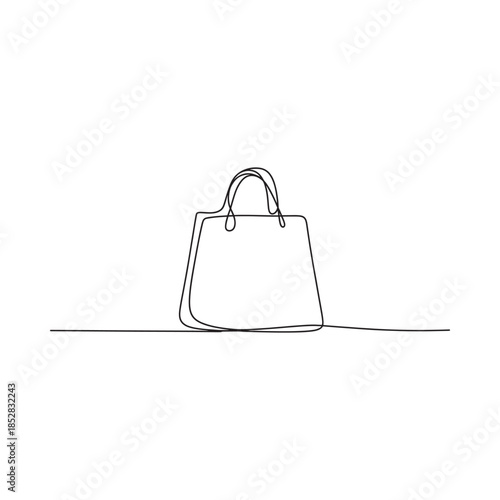Minimalist continuous line drawing of a simple handbag isolated on a white background