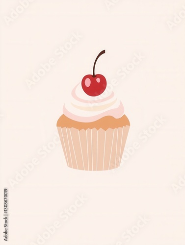 Minimalist cupcake logo featuring an elegant cherry on top designed for bakery branding with warm pastel colors and a simple yet sophisticated look