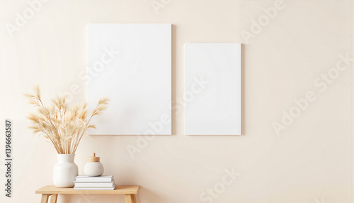 Minimalist decor with dried flower arrangement on console table, tranquility
