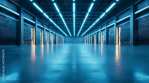 Minimalist Digital of Glowing Concrete Corridor in Modern Industrial Building