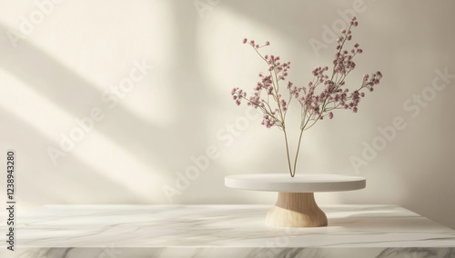 Minimalist floral display on marble surface.