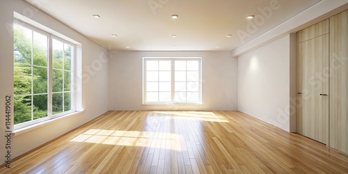 Minimalist Food Photography: Empty White Room Wooden Floor Background - Studio Shot