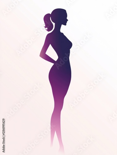 Minimalist illustration showcasing slim female silhouette emphasizing waistline in elegant pose against soft background. Generative AI