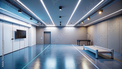 Minimalist Image: Empty Arcade Space Awaiting Sports Simulators Installation
