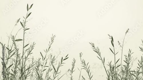 Minimalist image of green grass against a light beige background.