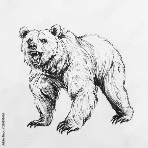 Minimalist ink sketch of roaring bear with strong lines