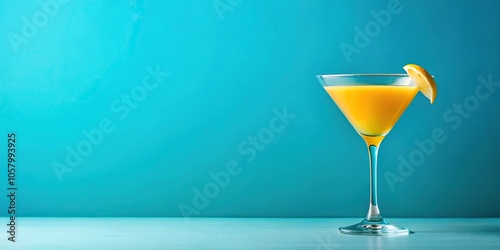 Minimalist isolated yellow cocktail on a blue background