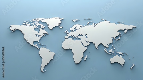 Minimalist Light Grey World Map on Blue Background with Ample Copy Space