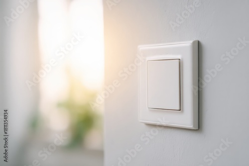 Minimalist light switch illuminated by soft sunlight, enhancing