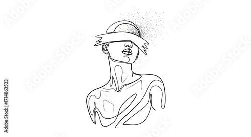 Minimalist line art portrait of a woman with a ribbon and glitter