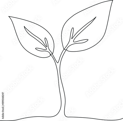 Minimalist line drawing of a young plant sprout with two leaves