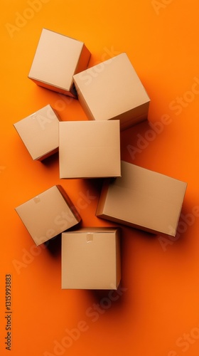 Minimalist Logistics Visualization Dynamic Cardboard Box Arrangement Showcasing Supply Chain Efficiency in Bold Geometric Composition for Modern Business Intelligence