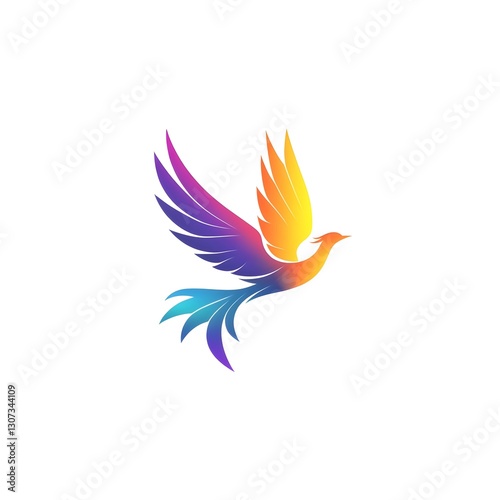Minimalist Logo Design of a Colorful Phoenix in Flight, Vector Graphics with Bright Colors and Simple Lines, Flat Color Blocks
