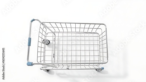 Minimalist metal shopping cart isolated on white, highlighting clean design and simplicity.
