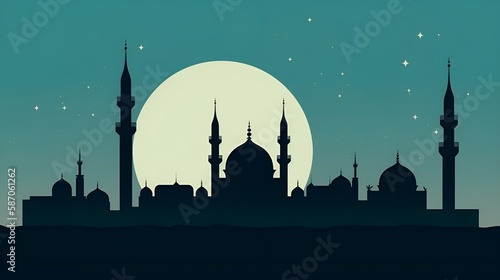 Minimalist Mosque, Crescent Moon, Star, Soothing Colors, Spiritual Design, Generative Ai, Generative, Ki