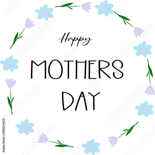 Minimalist Mother's Day Greeting with Floral Frame. Happy Mother's Day Floral Card Design