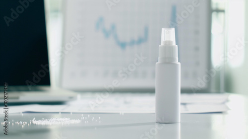 Minimalist nasal spray bottle on white background, clean and modern design for respiratory health and wellness.