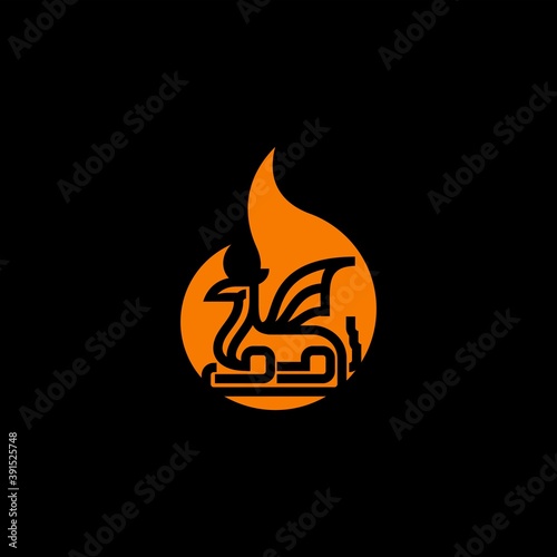 Minimalist Orange Colored Dragon Fire Symbol Silhouette Oil And Energy Company Line Icon Logo Illustration