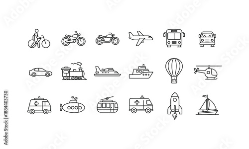 Minimalist outline transportation vehicle icons set