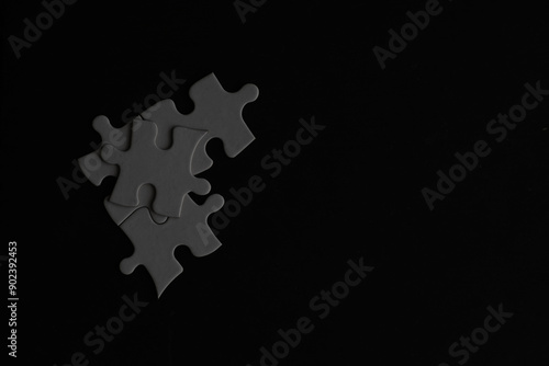 Minimalist Plain Black Puzzle Pieces on Dark Background - Conceptual, Minimal, Isolated