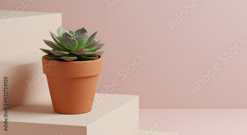 Minimalist potted succulent on soft pink background with clean design and natural lighting