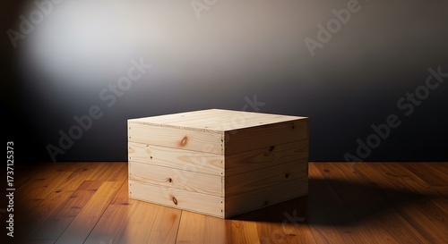Minimalist presentation, modern wooden box, rustic feel, display podium