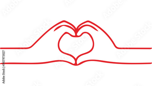 Minimalist Red Line Art Symbolizing Love and Connection, Simple Gesture of Affection, Expressive Design on White Background.