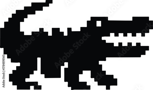 Minimalist Retro Game Alligator 8-Bit Pixel Silhouette on White Background