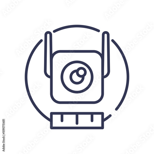 Minimalist security camera icon with a ruler, symbolizing compact design.