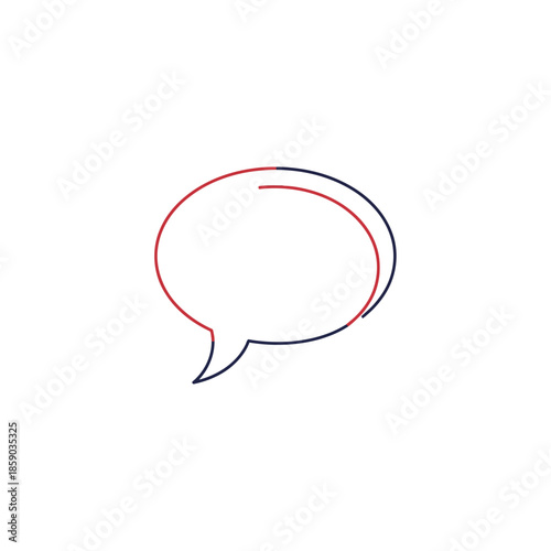 Minimalist speech bubble icon with thin red and blue outline on white background, communication concept