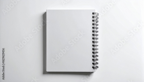 Minimalist style hardcover notebook in soft grey, no logo, curved corners, laid flat on a plain white background, subtle shadows below, soft studio lighting