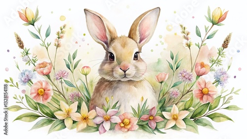 Minimalist Watercolor Easter & Lunar New Year Rabbit with Floral Decorations