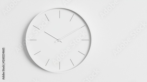 Minimalist white clock on wall, simple background, time concept, website design