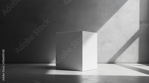 Minimalist white cube illuminated by sunlight in an empty room