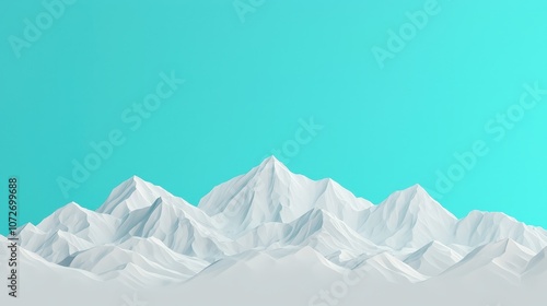 Minimalist White Mountain Range Against a Teal Sky 3D Illustration