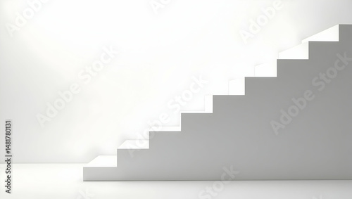 Minimalist white stairway against a clean, bright wall conveying a sense of progress, ambition, and upward mobility in a modern architectural space