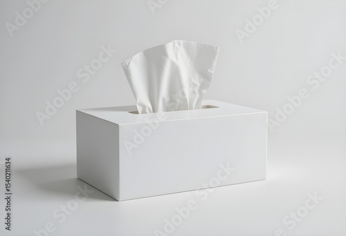 Minimalist White Tissue Box with Single Tissue on White Background – Modern Clean Design