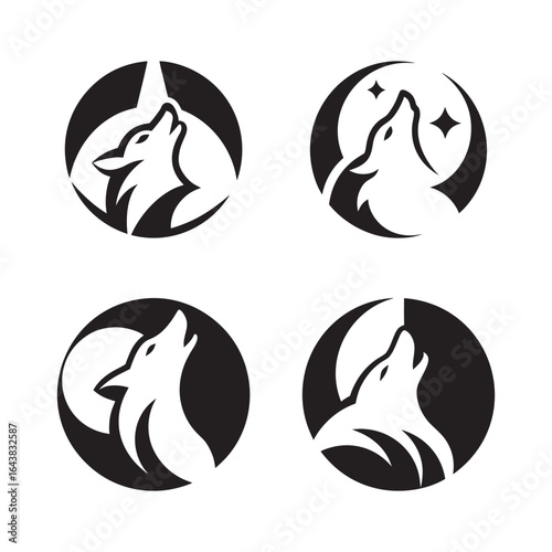 Minimalist Wolf Howling Silhouette Logo Bundle