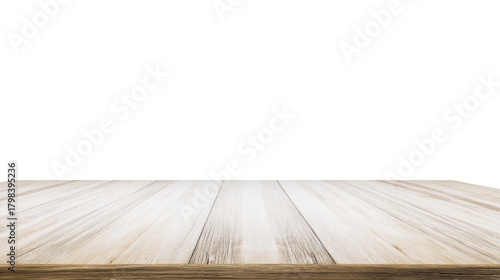 Minimalist wooden tabletop with light-colored, horizontally grained surface on transparent background
