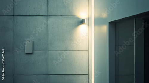 Minimalist work badge displayed prominently on a textured office wall with soft lighting creating a balanced composition in the workspace