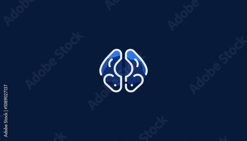 Minimalistic brain logo design in blue outline on dark background