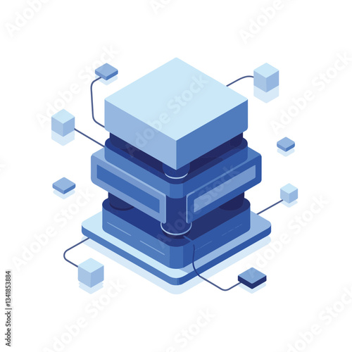 Minimalistic crypto mining rig with data flow symbols, technological concept