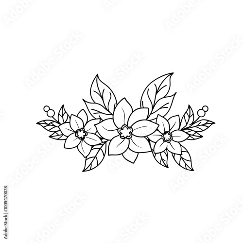 Minimalistic Floral Border with Outline Flowers and Leaves