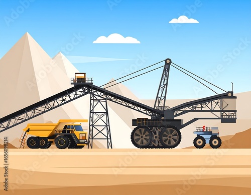 Mining equipment in a desert landscape