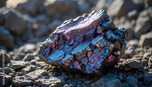 Mining minerals stunning iridescent hematite rock natural landscape close-up image outdoor viewpoint geological concept