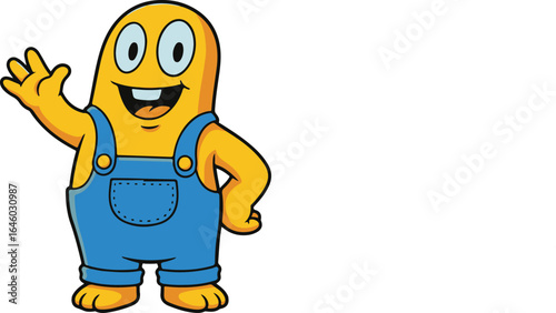 Minions-Inspired Cartoon Character Waving in Blue Overalls – Vector Illustration