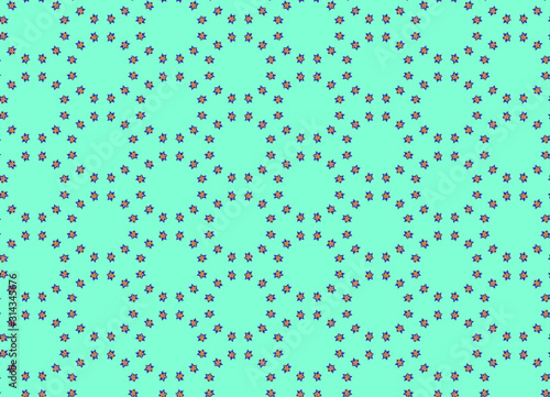 Mint background pattern from the star figures circle shape. Geometric seamless design template with simple symmetric ornament. Creative pattern in azure colour for fabric, banner, print, sticker