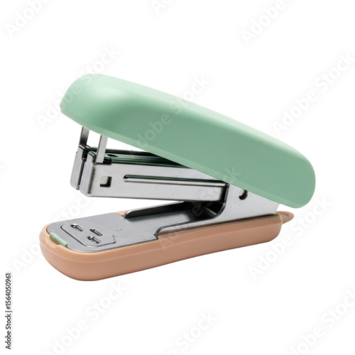 Mint green stapler with tan base on transparent background