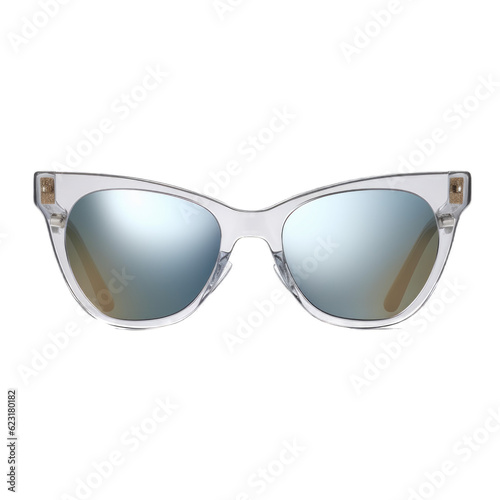 Mirrored cat-eye sunglasses isolated on transparent background. Generative AI