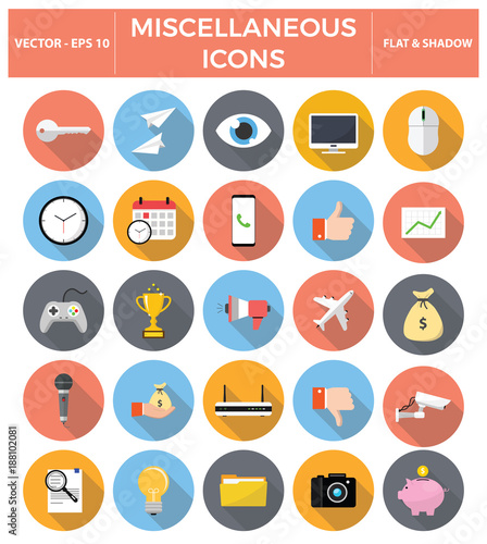 Miscellaneous flat icon set. Vector EPS10 Illustration.